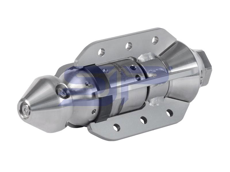 Tempered stainless steel is the primary material of its construction, allowing the nozzle to be operated by pressurized potable or recycled water.